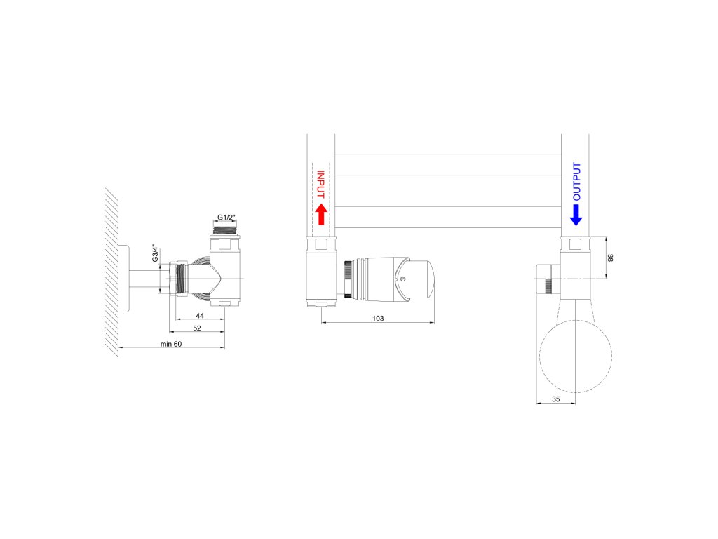 Výbava | Termostat, hlavica vľavo, Termostat, hlavica vpravo, Bočné |