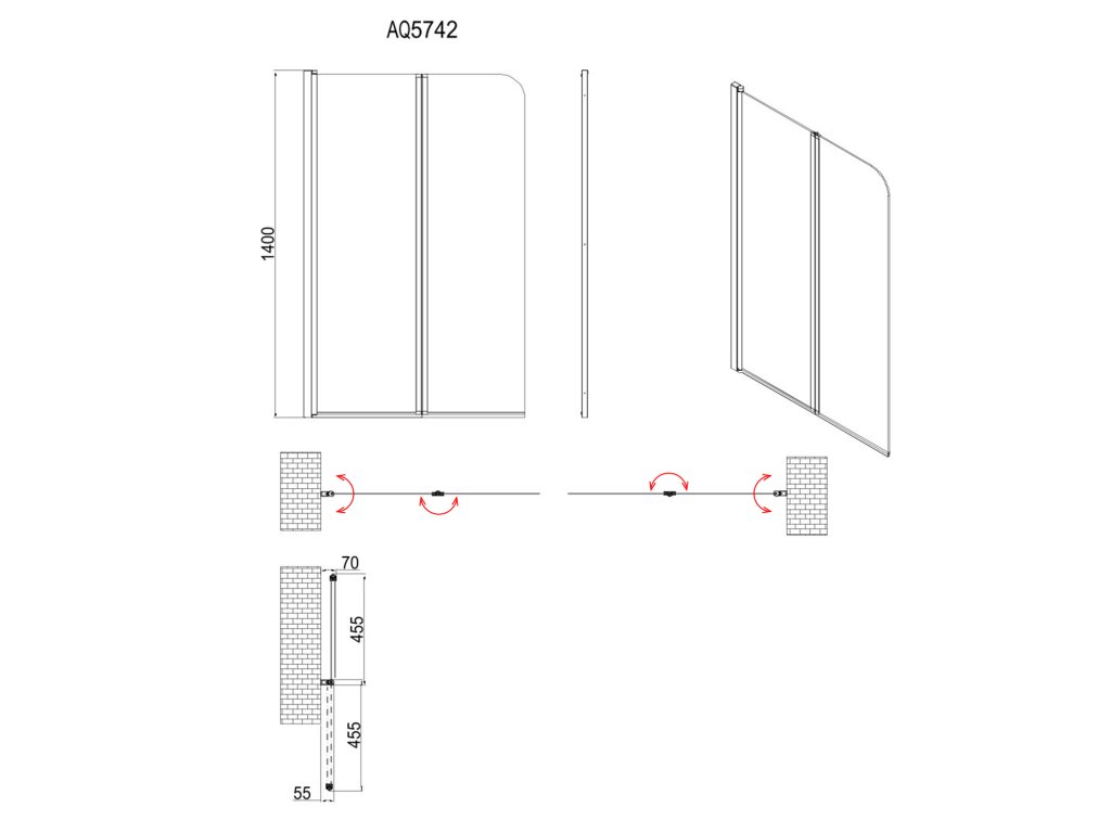WILA vaňová zástena 900x1400mm, skladacie, čierna, číre sklo