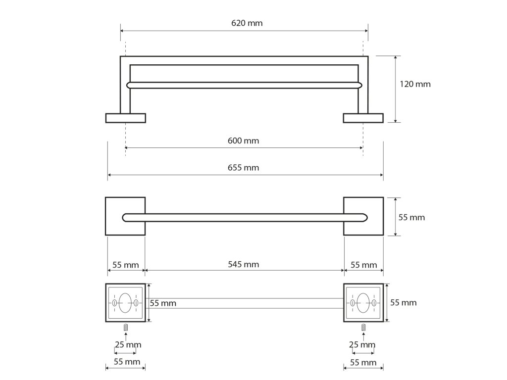 X-SQUARE držiak uterákov dvojitý 650mm, chróm