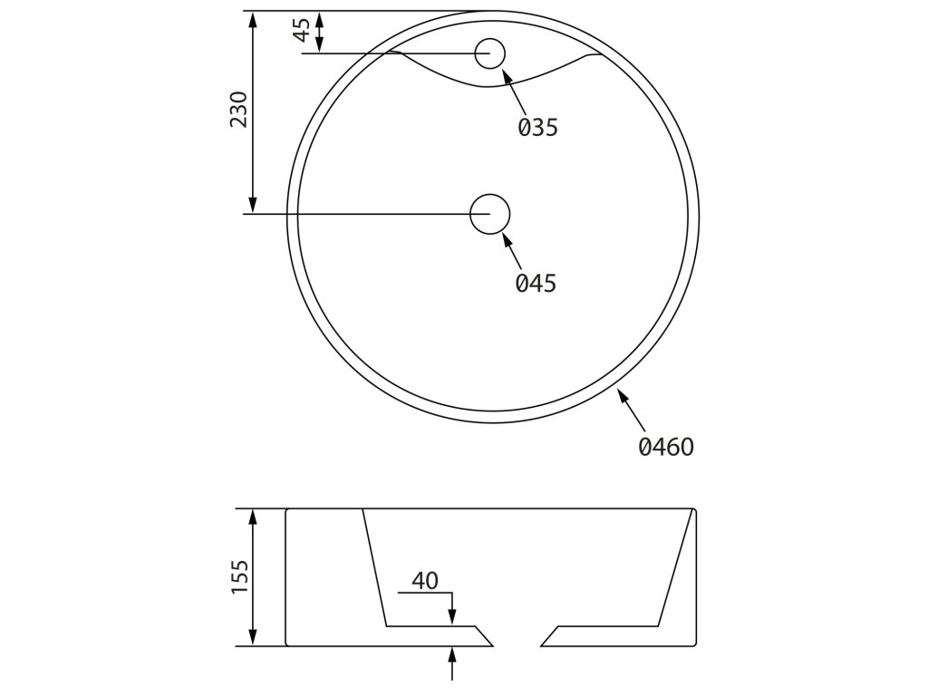 YAKARTA keramické umývadlo Ø 46 cm, na dosku, biela