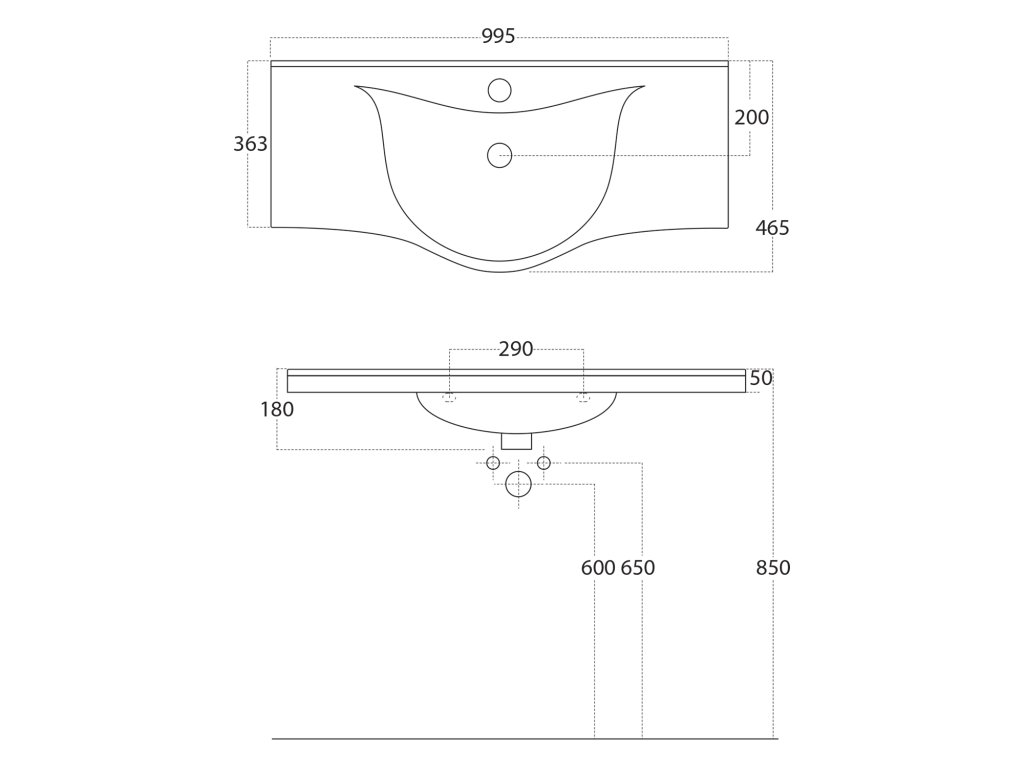 ZARA 100 keramické umývadlo na nábytok 99,5x46,5cm, biela