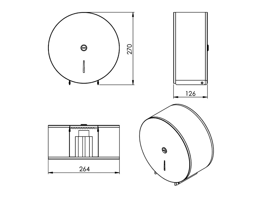 Zásobník na toaletný papier do priemeru 24cm, 264x126x270mm, čierná mat