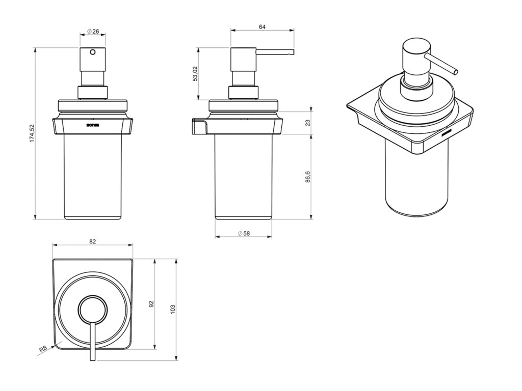 ZEN dávkovač mydla 250ml, mliečne sklo, chróm