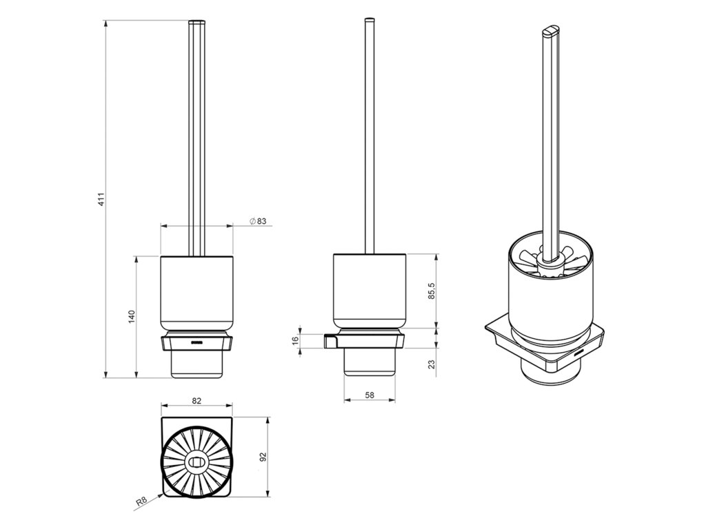 ZEN WC kefa závesna, mliečne sklo, chróm