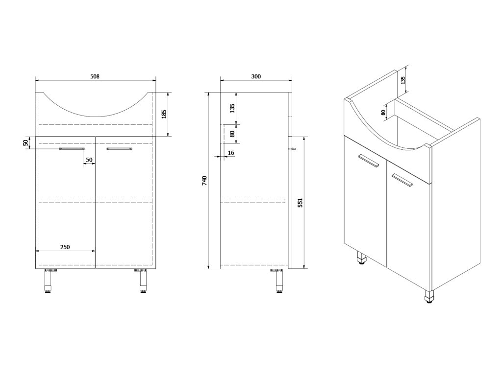 ZOJA umývadlová skrinka 50,5x74x30cm, dub platin