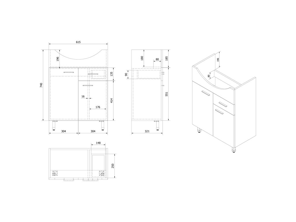 ZOJA umývadlová skrinka 61,5x74x32cm, 2x dvierka, 1x zásuvka, biela