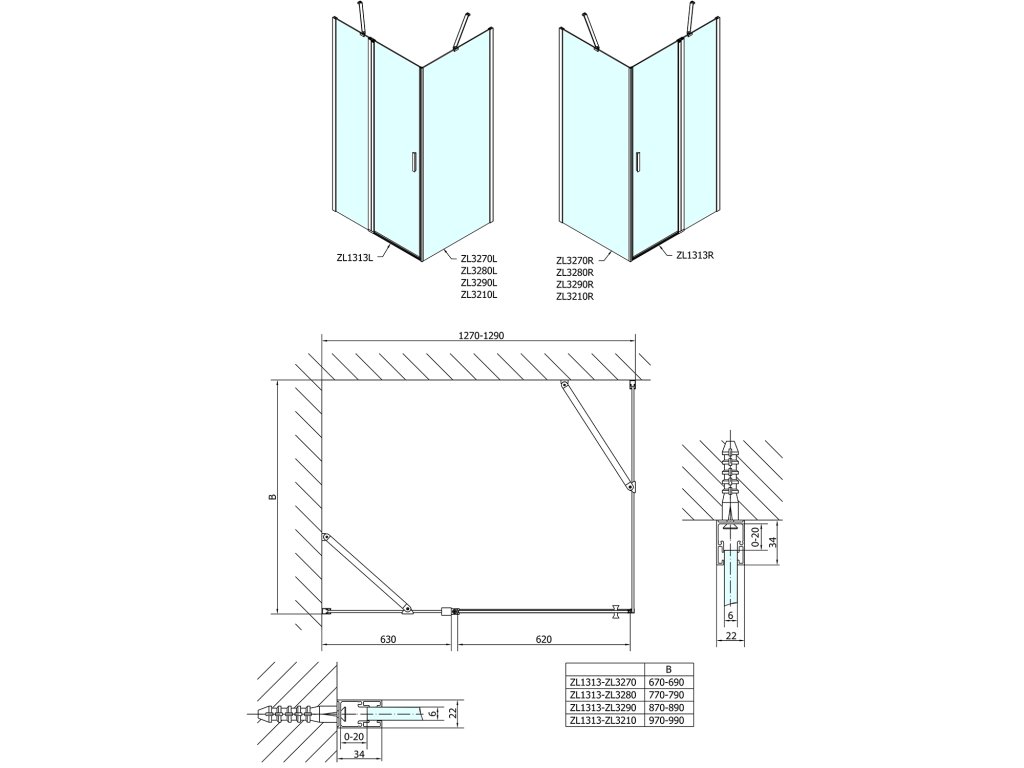 ZOOM obdĺžniková sprchová zástena 1300x900mm L/P varianta