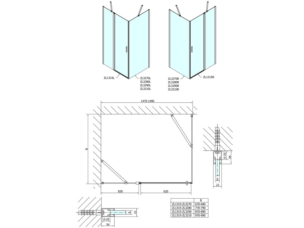 ZOOM obdĺžniková sprchová zástena 1500x700mm L/P varianta