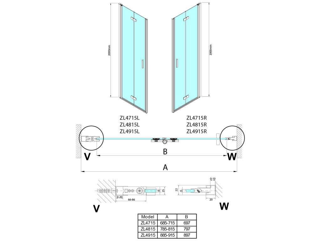 ZOOM sprchové dvere do niky 800 mm, lavé, číre sklo