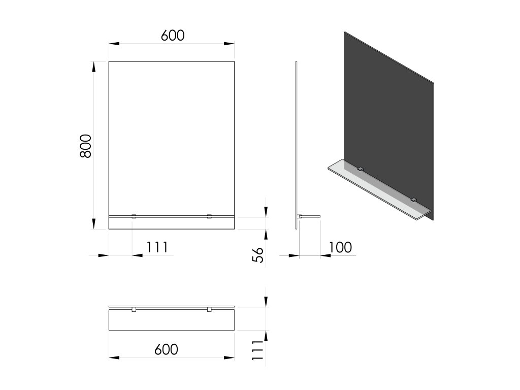 Zrkadlo s policou 60x80cm, vrátane závesov